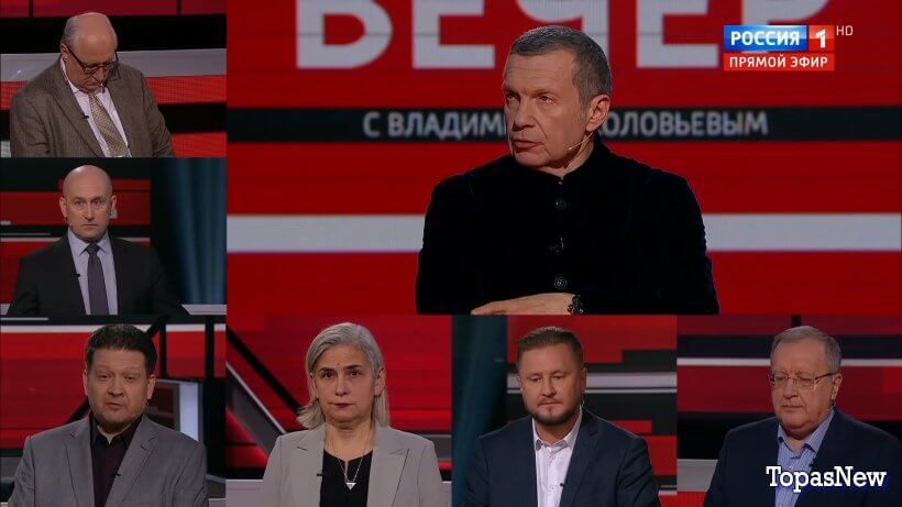 Вечер с Владимиром Соловьёвым от 8 апреля 2025 08.04.25 смотреть онлайн последний выпуск полностью сегодня: прямой эфир, Live трансляция бесплатно без рекламы.